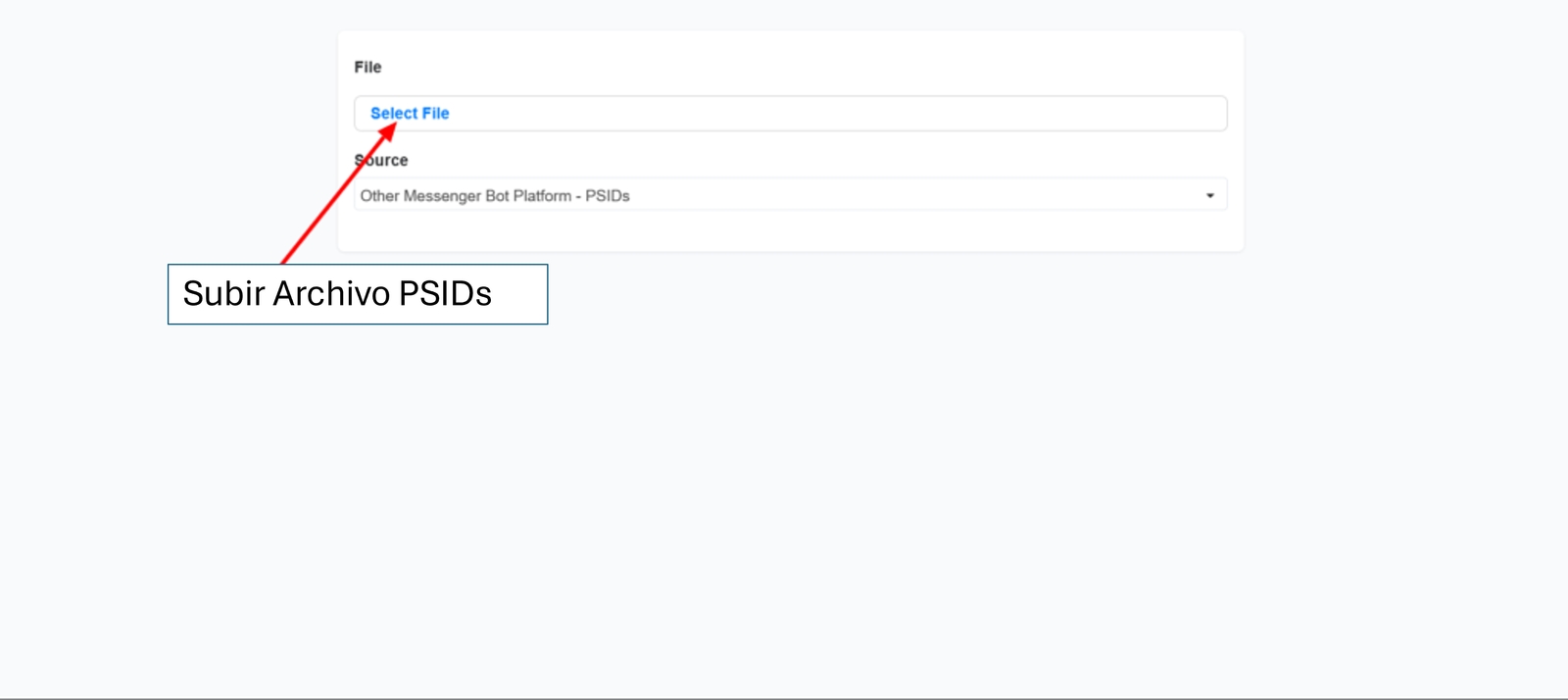 Si la plataforma de chatbot de origen no es Manychat, selecciona ‘Otra plataforma de bot de mensajería’ y sube los PSID.